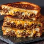 A comforting and indulgent dish featuring layers of ground beef and melty cheese, all nestled between crispy bread. Perfect for busy weeknights or laid-back gatherings.